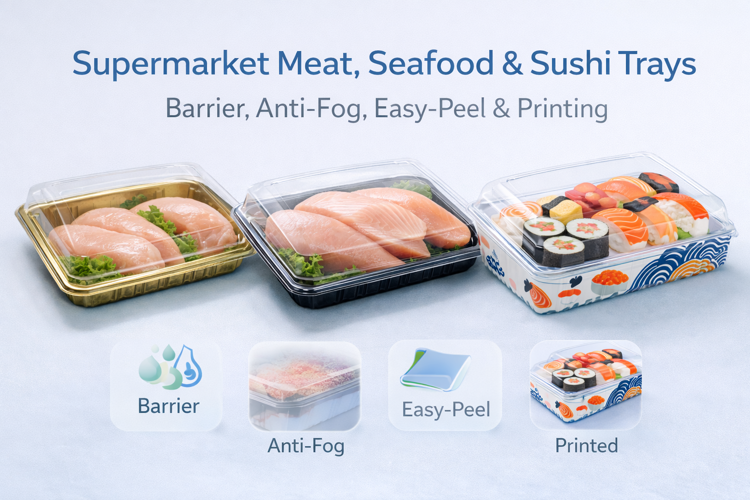Supermarket Meat, Seafood & Sushi Trays: How to Choose Thermoforming Sheets for Barrier, Anti-Fog, Easy-Peel & Printing